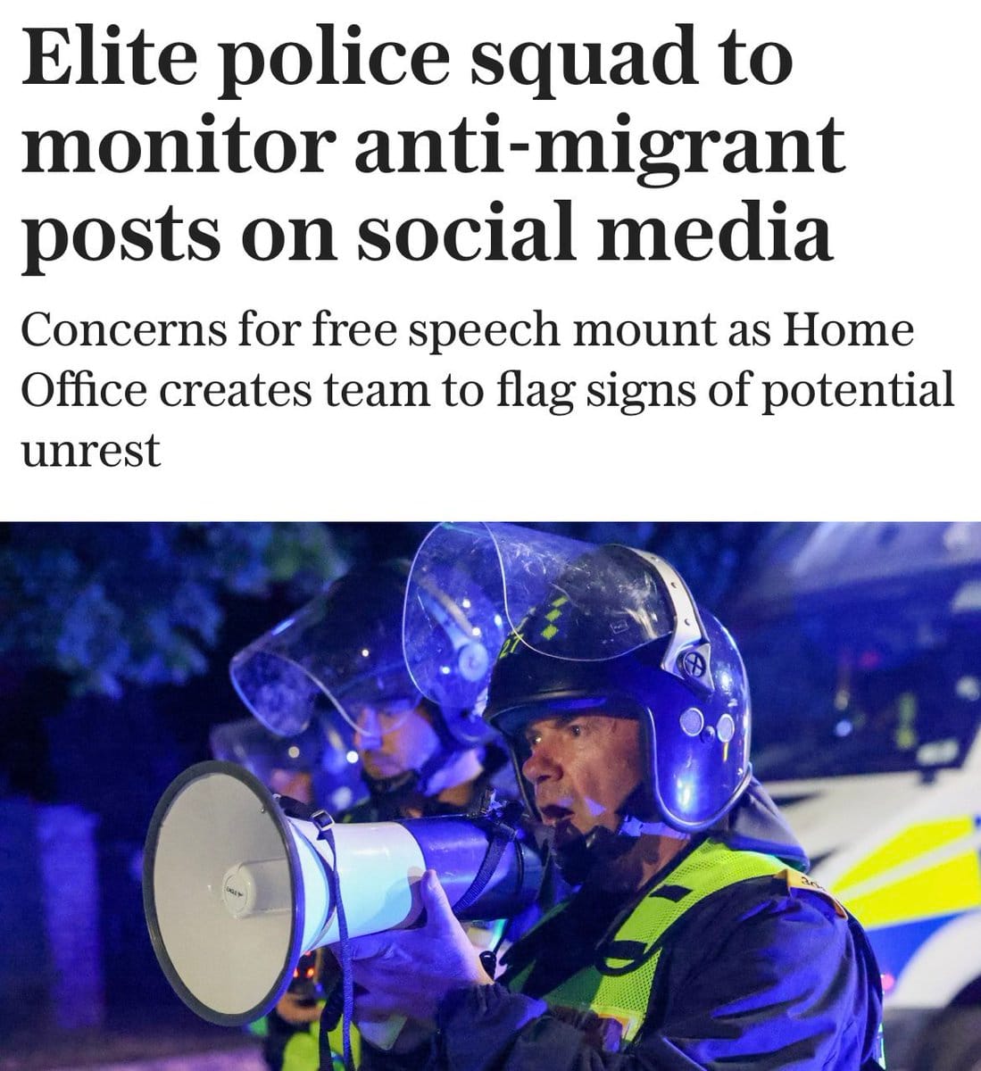 But as has come to light we know it's not just about the kids, a day after the OSA came into effect an elite police squad was reported in the news. Their remit? To monitor anti-migrant sentiment. This squad like all police fall under the Secretary of State.
